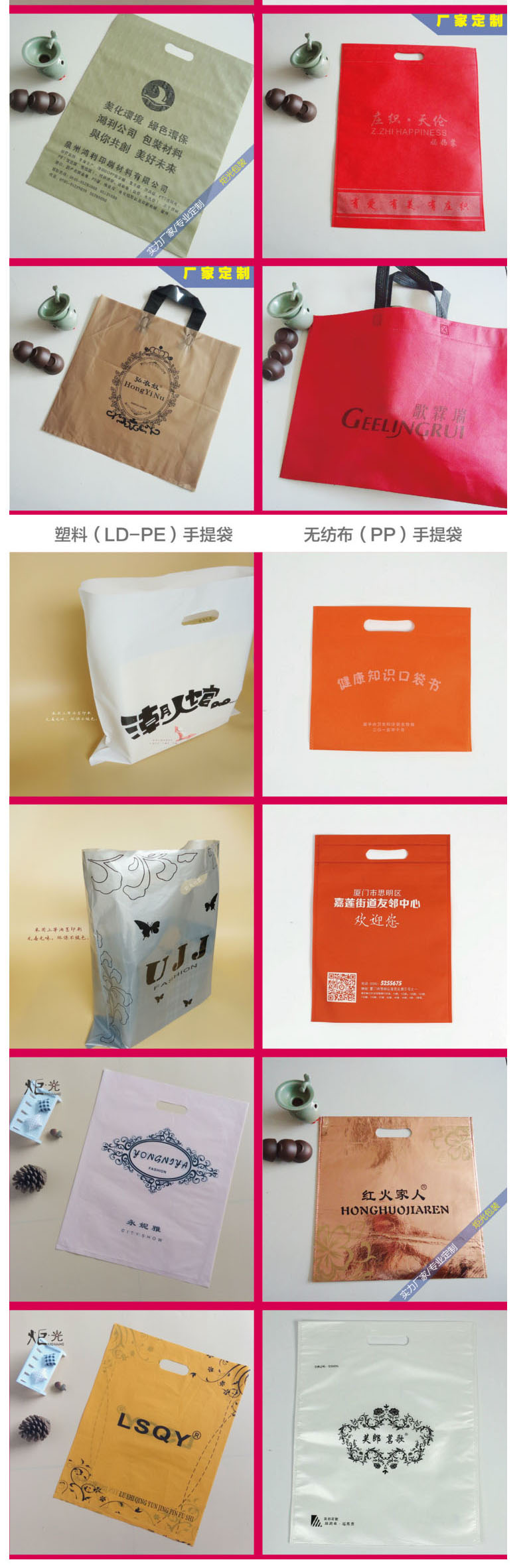 專業(yè)訂做,生產(chǎn)各類環(huán)保袋,超市購(gòu)物袋,無(wú)紡布購(gòu)物袋,歡迎廣大客戶來(lái)電惠顧! |
